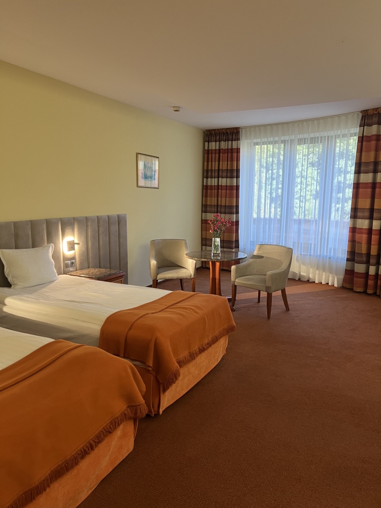 Każdy pokój składa się z dwóch pojedynczych łóżek oraz miejsca do pracy i wypoczynku. Łazienki wyposażone są w kabiny prysznicowe. Nocleg w naszym hotelu spełni oczekiwania najbardziej wymagających klientów.